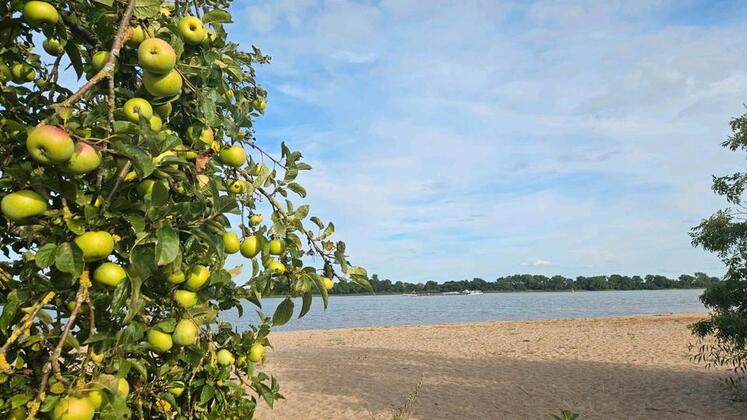 Vor der Siedlung verläuft der Weser-Radweg.