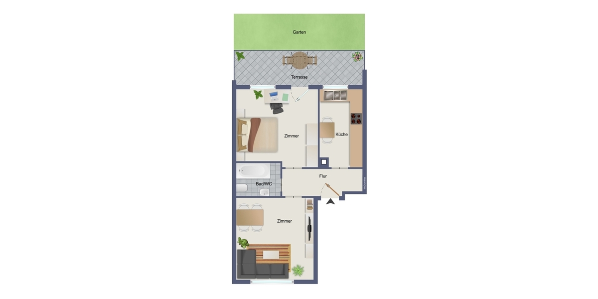 "2-Zi.-ETW mit großer Terrasse und eigenem Garten in Stuttgart Bad Cannstatt"